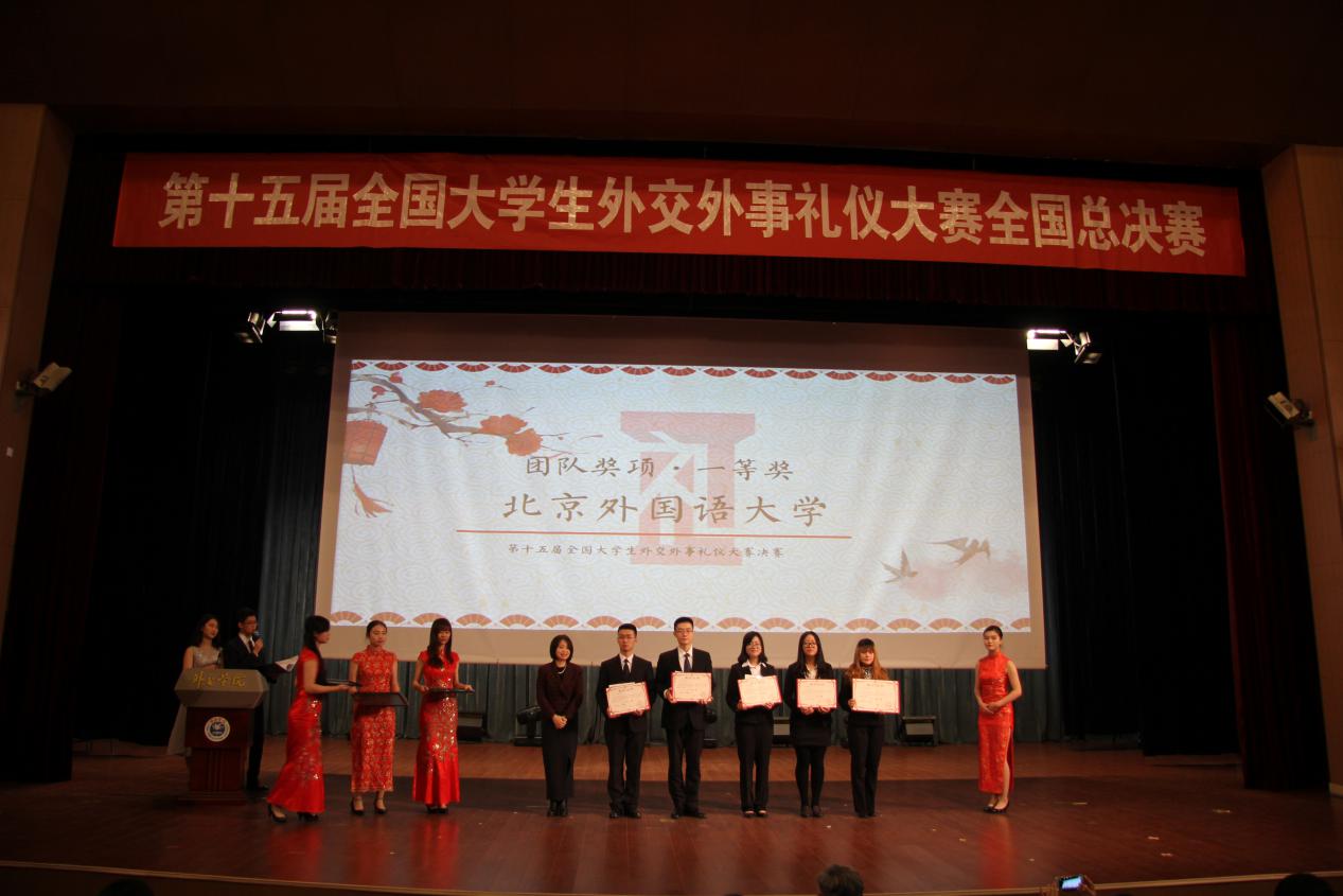 2016年11月27日,第十五届全国大学生外交外事礼仪大赛决赛在外交学院拉开帷幕。我院三名学生与西葡语系两名学生作为学校代表参加了比赛,与来自全国各地的30余支代表队同台竞技,取得了第一名的优异成绩。