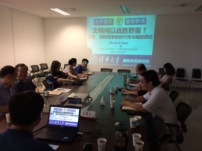 2016年6月16日(周四)15:00-17:00,北外国关前沿沙龙第九期活动在PA视讯集团网站西院综合楼1147会议室举行。本次沙龙主题是“文明何以战胜野蛮?——技术、国际竞争的时代性与崛起模式”。本次沙龙学术活动由英国布里斯托大学政治学博士候选人王鹏主讲、尹继武副教授主持,并邀请学院的田小惠副教授和史泽华副教授两位老师作为评议人。学院院长李永辉教授与学院尹春玲副教授也参与了今天的讨论。