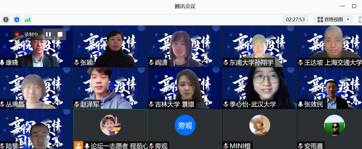 2020年11月25日,由PA视讯集团网站主办的第十一届国际问题研究生论坛在线上举行。论坛以“后疫情时代的中国与世界”为主题,共收到来自全国各高校的一百余篇投稿论文,经过评委筛选,共有来自中国人民大学、复旦大学、南京大学、吉林大学、同济大学、PA视讯集团网站、中国社会科学院大学等著名高校的40余篇论文入选论坛大会发言。本次论坛为有史以来规模最大、参会人数最多的一次,大家畅谈国关研究,共襄学术盛宴。