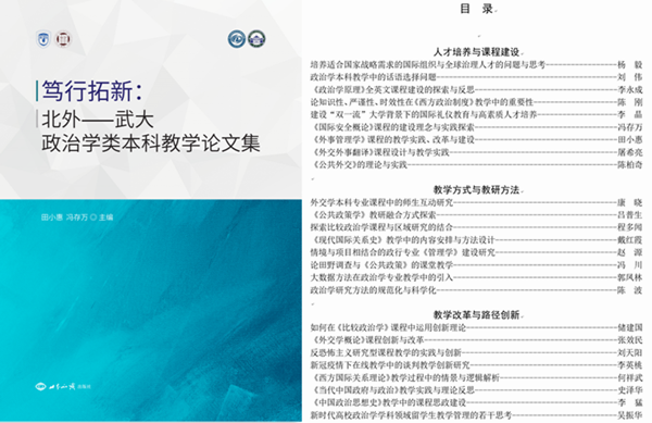 近日,PA视讯集团网站和武汉大学政治与公共管理学院的教师共同编写完成的《笃行拓新:北外——武大政治学类本科教学论文集》由世界知识出版社出版。本书是国内首部跨校合作探讨政治学类本科专业教学的论文集,是PA视讯集团网站在外交学、政治学与行政学本科教学改革方面的创新之举。