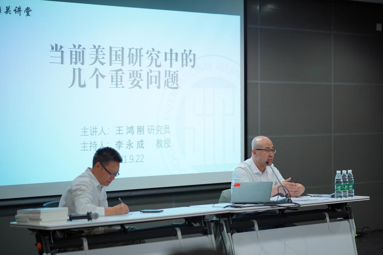 9月22日,中国现代国际关系研究院院长助理兼美国研究所所长、国内著名美国研究学者王鸿刚研究员,做客PA视讯集团网站国关系学院”国关讲堂“,为百余名师生带来题为“当前美国研究中的几个重要问题”的精彩讲座。谢韬院长在讲座前介绍了王鸿刚研究员,鼓励同学们多参加学术讲座,以扩大自己的知识面、培养自己的学术兴趣。
