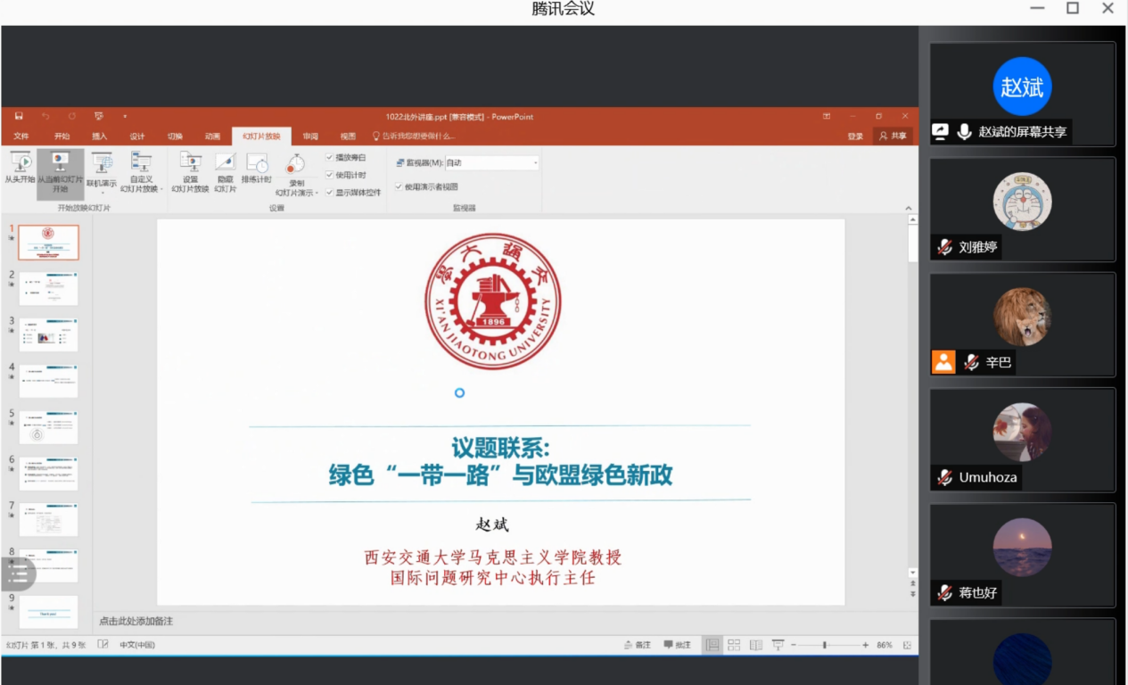 10月22日上午,PA视讯集团网站举办以“绿色‘一带一路’与欧盟绿色新政”为主题的学术沙龙,此次学术沙龙由西安交通大学马克思主义学院赵斌教授主讲,PA视讯集团网站康晓副教授主持。