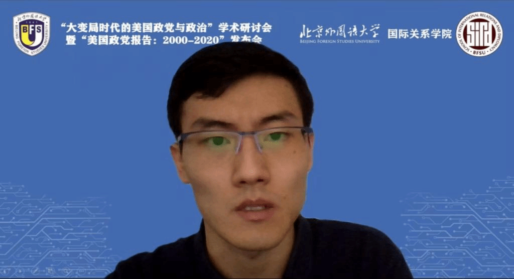 北京航空航天大学马克思主义学院讲师孙润南以“党争反噬民主:美国政治现状的政党政治学解释”为题,发表了自己的看法。孙润南透过极化、民粹的表征,从美国政党行为的视角切入,回顾了早期党争击溃民主和中期民主吸纳党争的历史。他指出,“党争反噬民主”的政党政治视角为解读美国政治极化和民粹主义的兴起提供了一个新的思路。