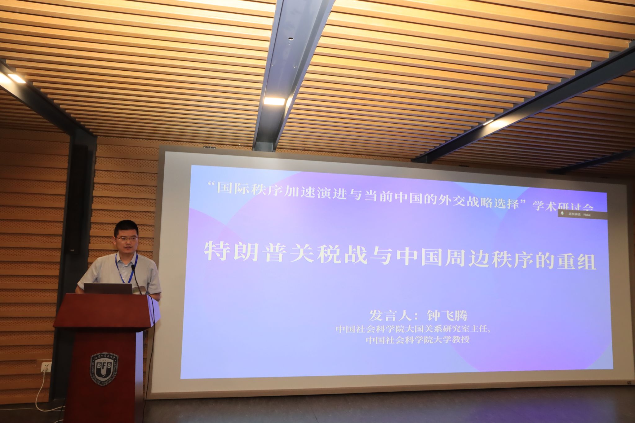 主题研讨第三时段由北外PA视讯集团网站副院长张颖教授主持。中国社会科学院美国研究所所长倪峰教授深入分析特朗普政府第二任期执政的特点;中国社会科学院大国关系研究室主任钟飞腾教授剖析了特朗普关税战与中国周边秩序的重组;外交学院特聘教授张胜军围绕“百年变局下的国际体系转型与国际秩序重构”发言。