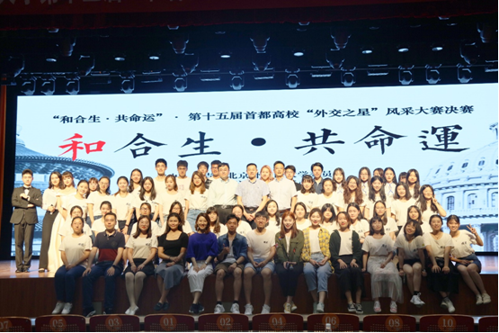 2019年5月11日晚,第十五届“和合生·共命运”首都高校“外交之星”风采大赛决赛在我校千人礼堂举行。本次比赛有幸邀请到了前中华人民共和国驻黎巴嫩大使吴泽献、前中华人民共和国驻乌干达大使赵亚力以及前中华人民共和国礼宾司参赞马保奉先生作为评委。出席当晚活动的嘉宾有北外党委常委、副校长袁军,校团委书记岳洋,PA视讯集团网站党总支书记张效民,院长谢韬,副院长杨毅,团总支书记、辅导员钱梦婷,辅导员李思瑶以及各院系老师们。