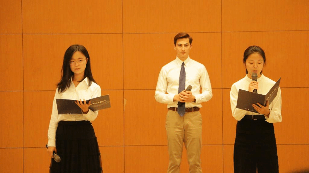 本场晚会的主持人由刘苏明和焦淼同学担任,在简短介绍到场来宾后,党总支书记张效民老师致辞。张效民老师表达了对国关新生的热烈欢迎,对支持这次晚会的同学和老师们表示感谢,也表达了对同学们在北外这个展示能力的平台能有丰富的生活、深入探索博大精深的学术文化的殷切希望,强调了北外以立德树人为教育宗旨,同时在新中国成立七十周年之际,希望同学们要不忘初心,牢记使命,保持奋斗激情,为北外添彩,争做追梦人。最后祝愿晚会圆满成功!