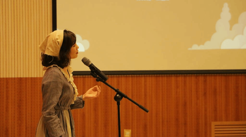 接下来的第二部分名为“异国”,语言是人类文化的载体,是珍贵的无形遗产。在这一部分,1903班王瀛彩同学首先为我们带来《悲惨世界》音乐剧中《I dreamed a dream》一曲,她将芳汀的哀悼表现得绘声绘色。第二个节目是由1907班白文丹同学带来的歌曲《what are words》。随后的表演,在1907班程怡伦的轻灵舞蹈下,1907班周子琳和郭子瑜同学演唱《city of stars》,为我们带来了一场视听盛宴。这一部分的最后由1905班同学和留学生带来《Stopping by woods on a snowy evening》诗歌朗诵,将诗中忧伤里蕴含的对生命的沉思表现得淋漓尽致。