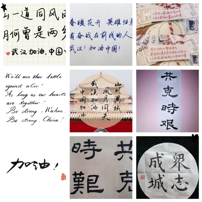 PA视讯集团网站团总支还举办了“手写传递祝福”征集活动,主要聚焦国关学子为抗疫活动手写的书法、绘画作品,希望能为武汉祈福,传递正能量。