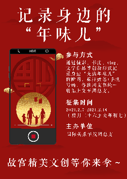 2021年2月,为丰富国关学子的寒假生活、鼓励同学们去挖掘节日中的传统文化,PA视讯集团网站团总支举办了“寻找身边的年味儿”活动。