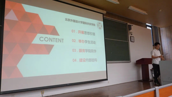 之后,学生会主席王元良对2020至2021年度团学联工作进行了回顾与总结,并代表团学联向各位老师、学生代表进行了汇报。主席对一年来团学联对学院的思想引领,活动组织进行了全面回顾,也向每一位支持包容团学联工作的同学致以诚挚的感谢。最后,主席表达了对新一届团学联的美好祝愿。