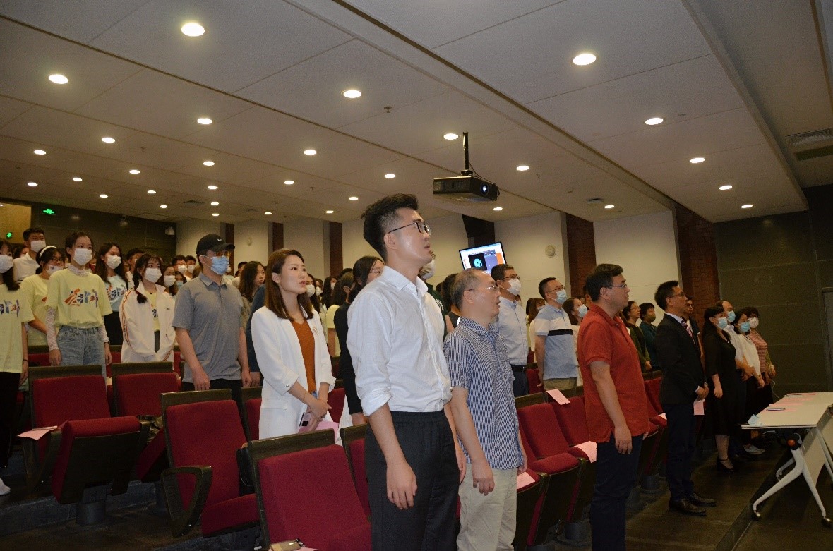 典礼在庄严的国歌中开始,张效民书记对2021级新生表示热烈欢迎和祝贺,表达了对大家的祝愿和期待,希望大家能和年轻的国关一起成长。