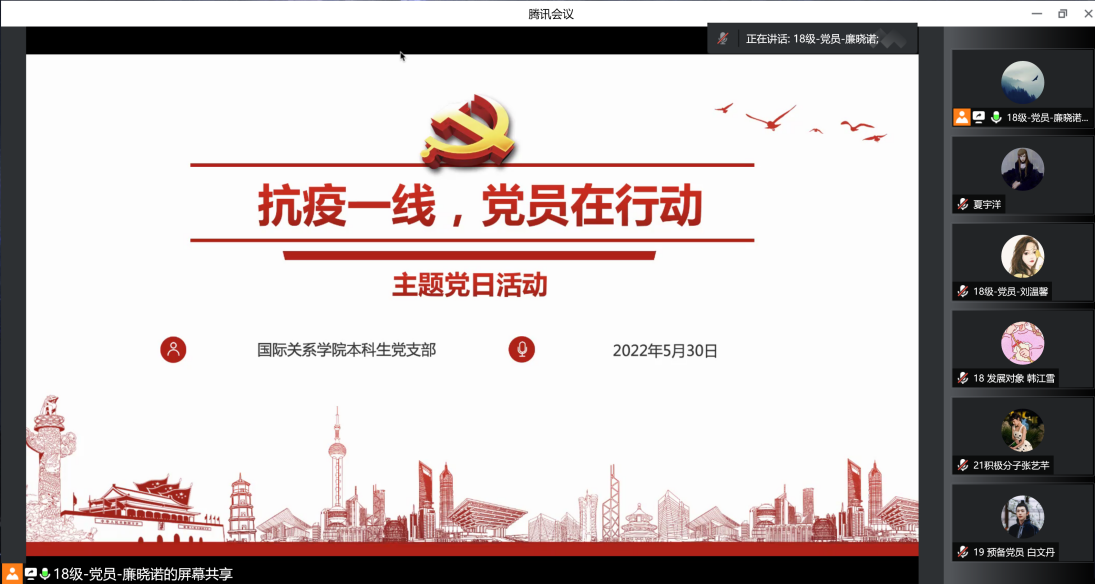 2022年5月30日下午,PA视讯集团网站本科生党支部开展线上疫情防控事迹分享主题党日活动,邀请参与疫情防控的本学院志愿者分享志愿服务经历和个人感悟。活动由党支部副书记廉晓诺同志主持,支部正式党员及预备党员、本学期发展对象、入党积极分子参加了此次活动。