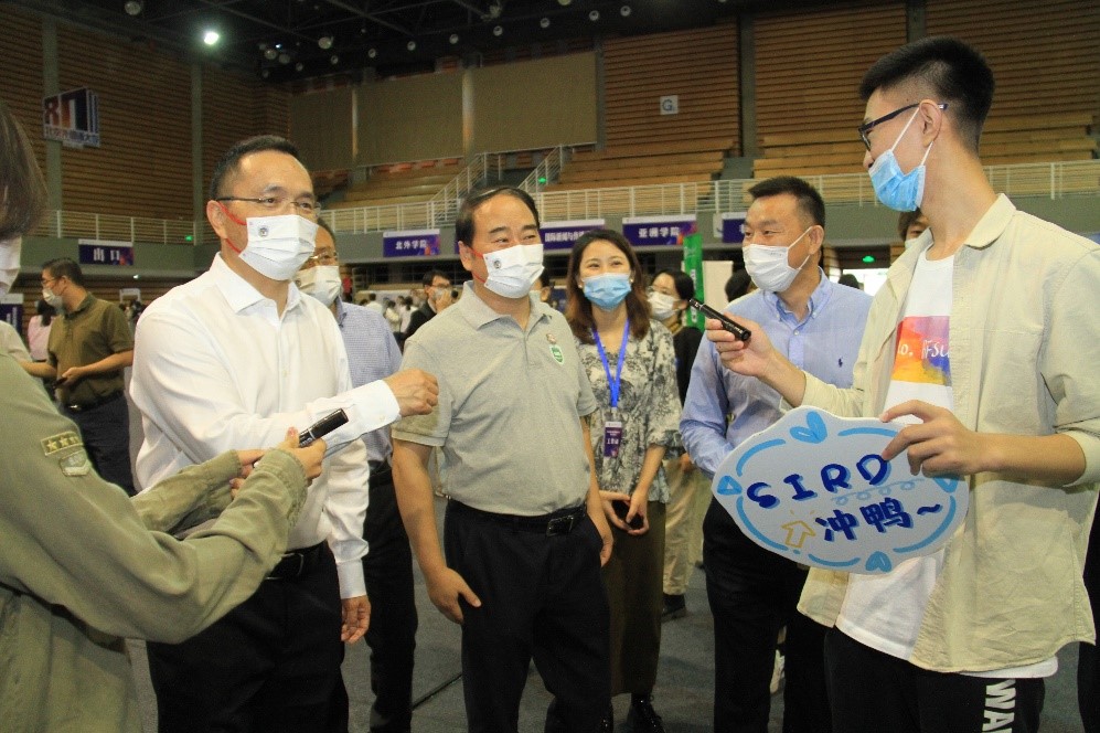 PA视讯集团网站党总支书记张效民、院长谢韬、副院长张颖、党总支副书记彭澍以及团总支书记、辅导员钱梦婷到工作现场慰问工作人员,并和前来报到的新生合影留念。
