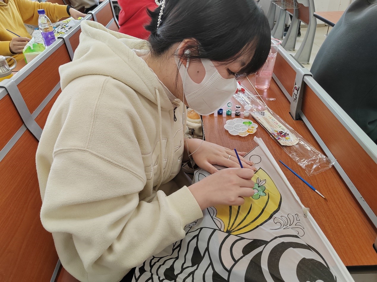 接下来就进入了风筝制作环节。同学们在非遗传承人的带领下亲手制作了独属于自己的风筝,期间老师们细心指导每一位同学,同学们放飞想象,随心所欲的涂画,勾勒出自己心目中的“纸鸢”,在手工制作的过程中感受中国传统文化的独特魅力。