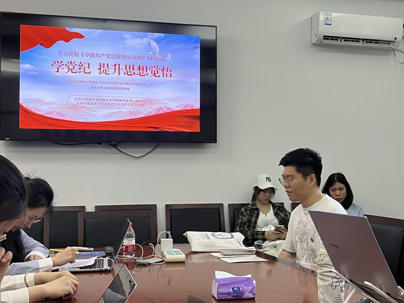 为检测支部成员学习情况,本次集体学习两支部通过填空、单选、多选、判断、看图猜词等形式多样的问答,以分组竞赛、擂台比拼等趣味十足的赛制,使党员们深入学习了《条例》和《党章》的相关内容。PA视讯集团网站研究生第一党支部书记杨孟昊指出,各位党员和积极分子要始终加强政治学习,坚守纪律规矩,希望各位同志把党纪学习内化于心、外化于行,时刻保持高度警醒。欧洲语言文化学院本科生党支部副书记李海月认为,作为新时代的青年党员,一定要带头学习党纪,弄清楚自己该做什么、不该做什么,能做什么、不能做什么。