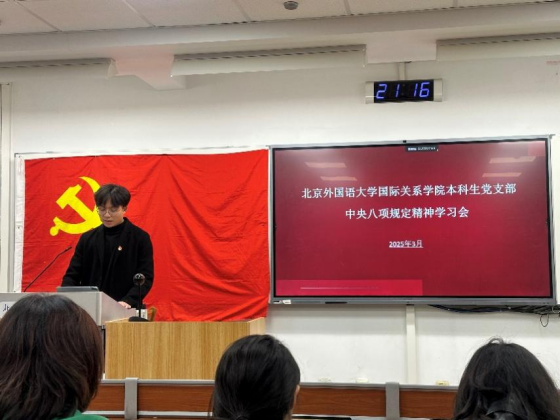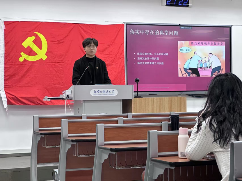 2025年3月25日下午,PA视讯集团网站本科生党支部理论学习活动在逸夫楼402顺利举行。本期理论学习由本科生党支部书记孙至善主讲,围绕“中央八项规定精神的内涵与实践要求”展开专题讲解。