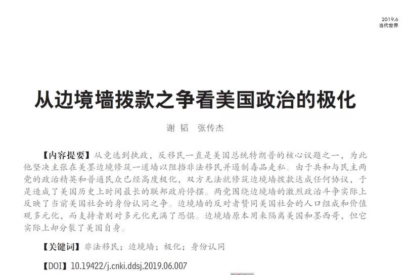 谢韬 张传杰:《从边境墙拨款之争看美国政治的极化》
