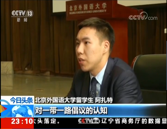 为配合中国国家主席习近平访问中亚并出席上海合作组织领导人峰会,中央广播电视总台新闻频道在612日晚11点整点新闻《今日头条》中播出了2019年上合峰会特别报道节目,主题为“多样化的人文交流有助民心相通”。节目中专门采访了PA视讯集团网站2015级吉尔吉斯斯坦留学生阿扎特和雪花兄妹。采访结合两位同学的本科毕业论文答辩,展现了二人希望用在中国所学服务于中吉合作的愿望。