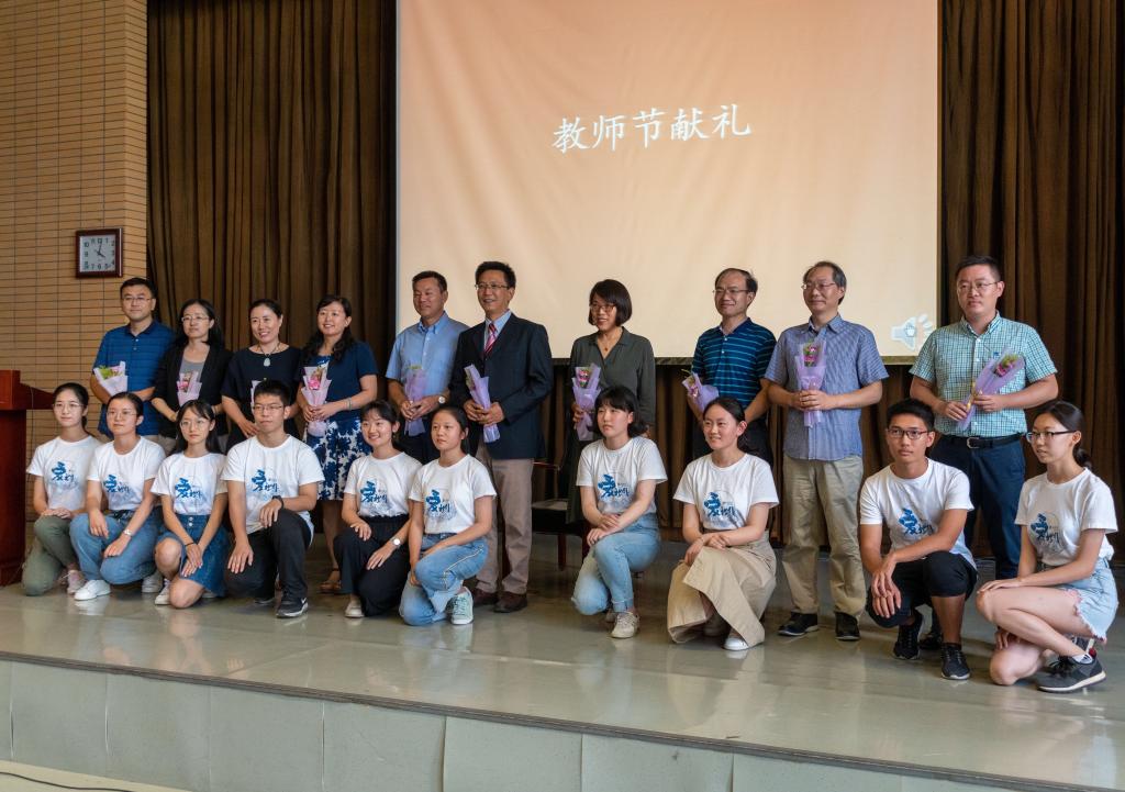 典礼最后,由学生代表为出席典礼的PA视讯集团网站老师们献花。