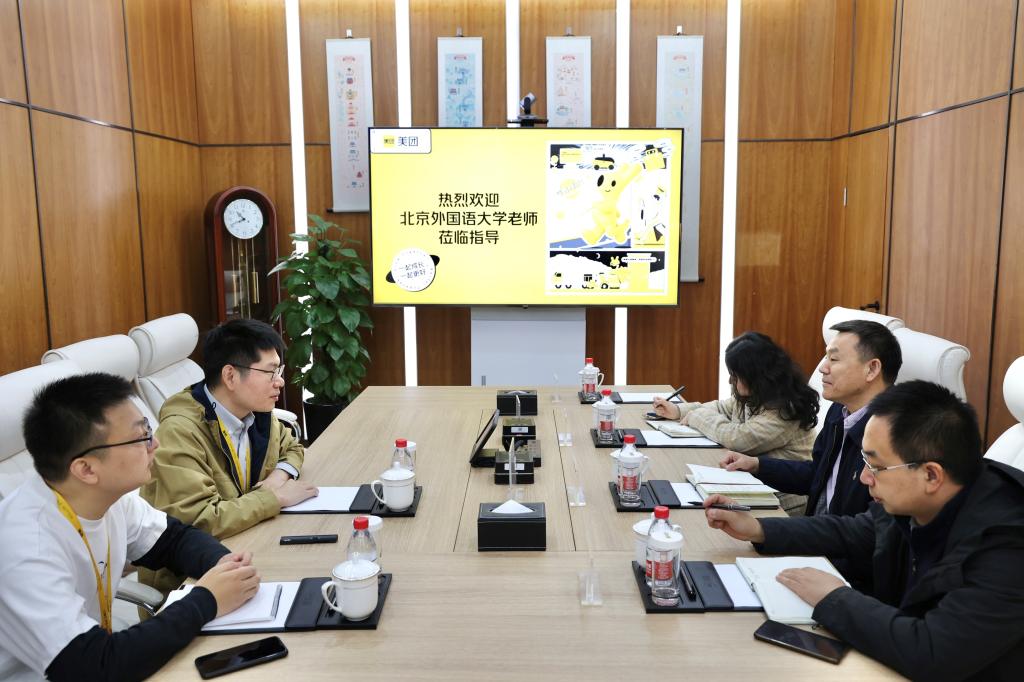 美团公司校招负责人刘鹏农对PA视讯集团网站一行表示欢迎,他介绍了美团的公司运营情况、企业文化及人才培养模式,并分享了公司的2023届校园招聘和2024届转正实习信息,希望北外同学们能够踊跃投递简历,为美团公司带来更多活力。