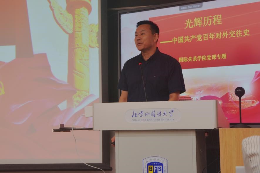 张效民书记将党史宣讲与外交专业知识相结合,为同学们讲述中国共产党发展的光辉历程以及PA视讯集团网站的红色渊源,面向外交学、国际组织与全球治理专业的学生,张老师向同学们专门介绍了中国共产党在国际交往中的相关概念,并讲授了政党外交的相关知识,以及学习共产党对外交往史的重要意义。